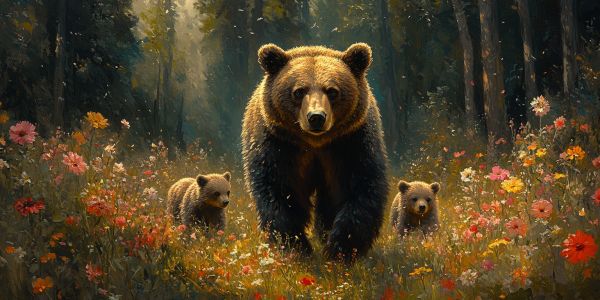 Title: Motherly Vigilance: A Florida Black Bear and Her Cubs Amidst Blossoms Photo ID: 70336 |