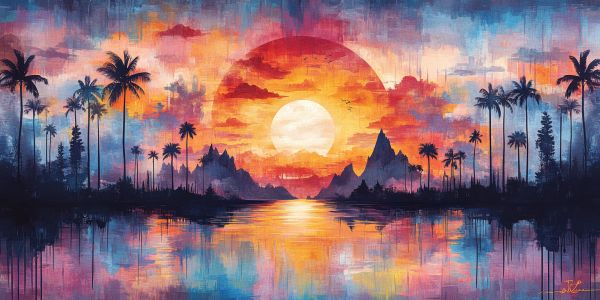 Title: Vibrant Sunset Over Tropical Landscape: A Canvas of Colors Photo ID: 70511 |