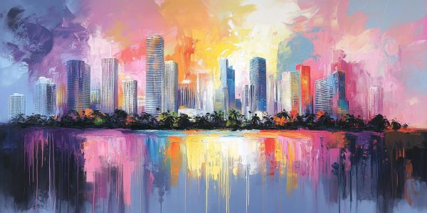 Title: Vibrant Impressionist Canvas of Miami Skyline at Sunset Photo ID: 70876 |