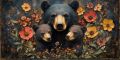 Graceful Florida Black Bear and Cubs Amidst Florals