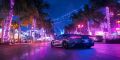 Sleek Sports Car Illuminated by Miami’s Vibrant Nightlife