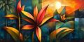 Colorful Cubist Interpretation of Miami Nature at Sunset