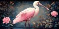Regal Roseate Spoonbill Adorned in Blooming Floral Crown