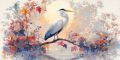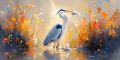Graceful Heron Amidst a Colorful Dance of Abstract Leaves