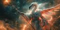 Ethereal Phoenix Rising Amidst Cosmic Flames in Galactic Artwork
