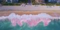Aerial View of Miami Beach with Frothy Pink Waves Crashing Ashore