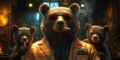 Stylish Urban Florida Black Bear and Cubs in a Moody Bar