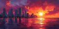 Sunset Symphony Over Miami's Gleaming Skyline and Waters