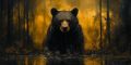 Majestic Florida Black Bear with Cubs Amid Blossoming Flowers