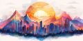 Vibrant Sunset Over Miami's Skyline and Mountainous Backdrop