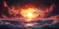 Dramatic Sunset Amidst Fiery Clouds Over Miami Beach