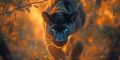 Majestic Black Panther Glowing Amidst the Night Sparks
