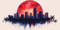 Miami Skyline Silhouettes Under a Fiery Red Sun