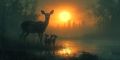 Serene Dawn: A Mother Key Deer and Fawns by the Waterfront