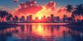 Miami Skyline at Sunset: A Vibrant Digital Art Representation