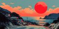 Vibrant Sunset Over Miami Beach: Retro Artistic Representation