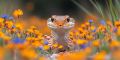 Captivating Gaze of a Corn Snake Amidst a Vibrant Floral Sea