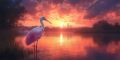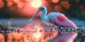 Majestic Roseate Spoonbill Wading in Serene Miami Waters at Sunset