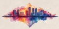 Vibrant Watercolor Interpretation of Miami's Iconic Skyline