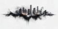Ethereal Miami Skyline, A Textured Black and White Vector Art