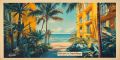 Welcome to Tropical Miami: A Vibrant Artistic Postcard Illustration