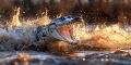 Majestic Crocodile Leaping in Miami Waters at Sunset