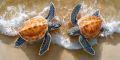 Playful Sea Turtles Embracing the Waves in Watercolor Art