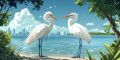 Elegance by the Bay: Great Egrets Overlooking Miami Skyline