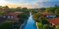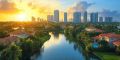 Stunning Sunrise Over Miami's Skyline and Tranquil Waterways