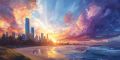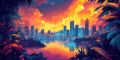 Vibrant Sunset Over Miami's Skyline: A Stunning Artistic Interpretation