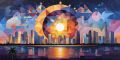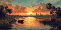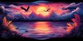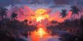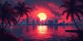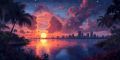 Colorful Dreamlike Illustration of a Vibrant Sunset Over Miami
