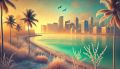 Vibrant Artistic Illustration of Miami's Iconic Coastal Landscape