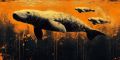 "Golden Waters: Manatee and Calves in Bold Pop Art Style"