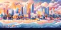 Dreamy Pastel Miami Skyline at Dusk: A Retro Cityscape