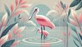 Artistic Illustration of Roseate Spoonbill Family in Miami Wetlands