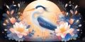 Majestic Blue Heron Amidst Luminous Florals Under Moonlight