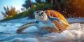 Majestic Loggerhead Sea Turtle Emerging from Foamy Waves