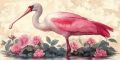 Elegant Roseate Spoonbill Amidst Lush Botanical Blooms