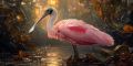 "Elegant Rosette Spoonbill Amidst a Lush Wetland Ecosystem"