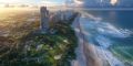 Aerial View of Miami's Beachfront Skyscrapers and Turquoise Waters