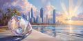 Sunlit Miami Skyline and Sparkling Crystal on Sandy Beach