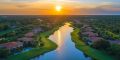 Aerial View of Sunset Reflections Over Serene Florida Waterway