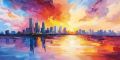 Vibrant Sunset Over Miami Skyline: A Vivid Expressionist Perspective