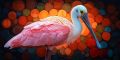 Vibrant Cubism-Inspired Roseate Spoonbill Against a Colorful Backdrop