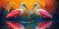 Dance of the Roseate Spoonbills in Vibrant Cubist Waters
