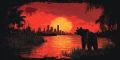 Wilderness Meets Urban: Bear Silhouette Against Miami Sunset