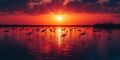 Vibrant Sunset Over Miami's Skyline and Serene Waters