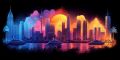 Vibrant Neon Miami Skyline: A Fusion of Color and Light