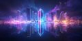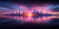 Vibrant Neon Reflections of Miami Skyline Across Tranquil Waters