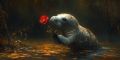 Enchanting Manatee with a Red Flower in a Mystical Swamp